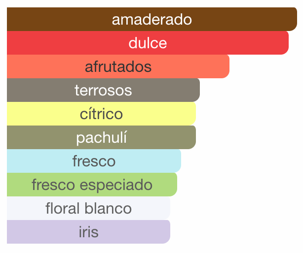 Las Notas de Fondo son praliné, pachulí y vetiver