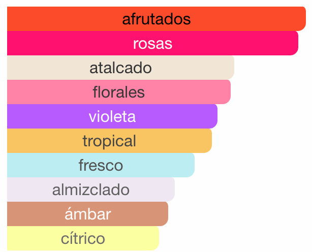 Las Notas de Salida son lichi, zarzamora (frambuesa negra), frambuesa y bergamota