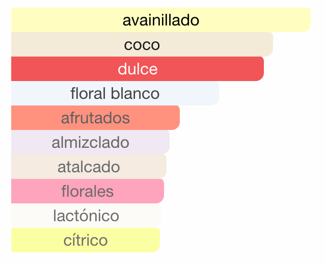 Las Notas de Corazón son coco, flor de azahar del naranjo, nenúfar (lirio de agua) y Lactonas