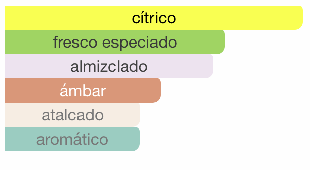 Las Notas de Salida son jengibre y bergamota