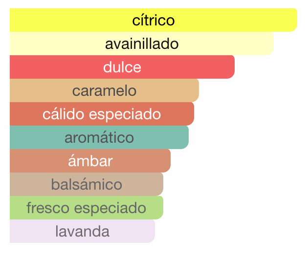 Las Notas de Salida son mandarina, naranja, lavanda, cardamomo y pimienta negra