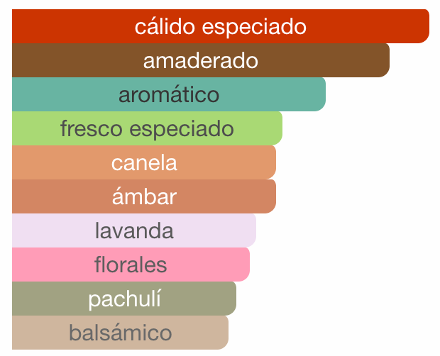 Las Notas de Salida son canela, pimiento morrón, bergamota y nuez moscada