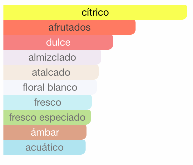 Las Notas de Salida son pera, mandarina, toronja (pomelo) rosada y bergamota