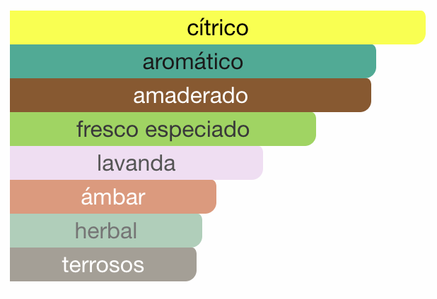 Las Notas de Corazón son lavanda, geranio, vetiver y pachulí